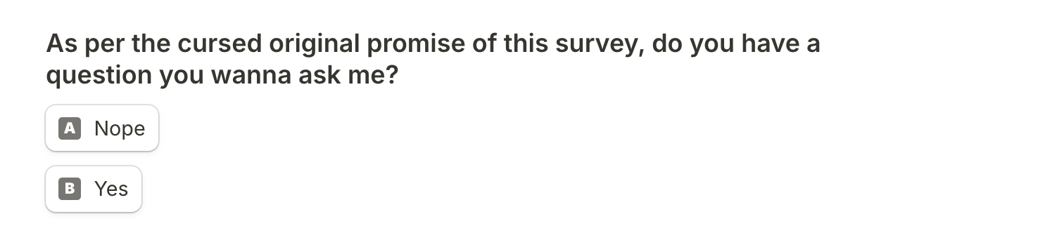 Loyal BATheads will remember the dog days of Survey Summer during which I sent out at least one survey every week for some reason. In the survey that ended up winning Survey Of The Year, I promised to answer questions that you might have:
