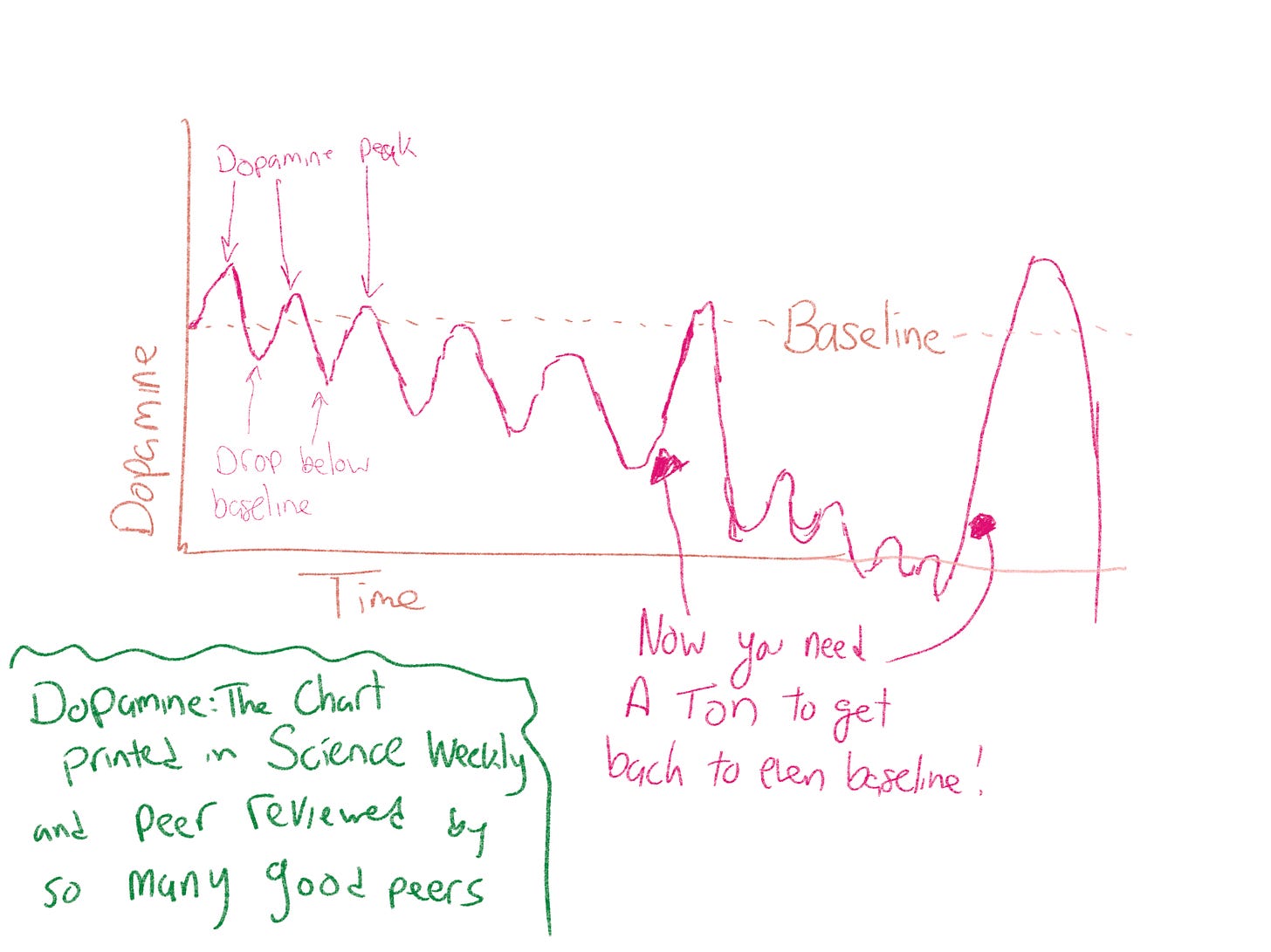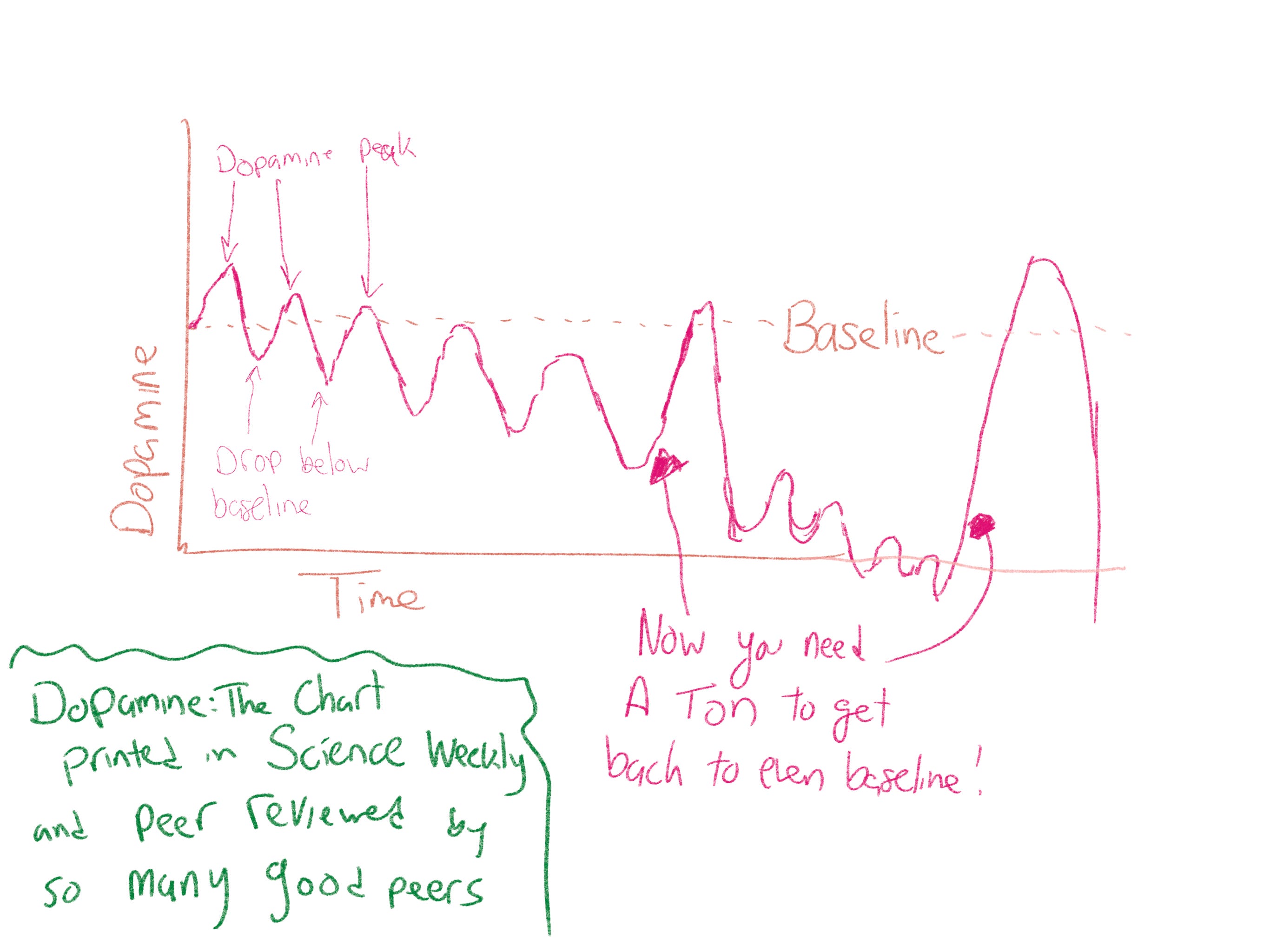 So you’re dipping below baseline and you need more of whatever the thing was to get you back up to that feeling of good. Here is a science graph I spent years making:
