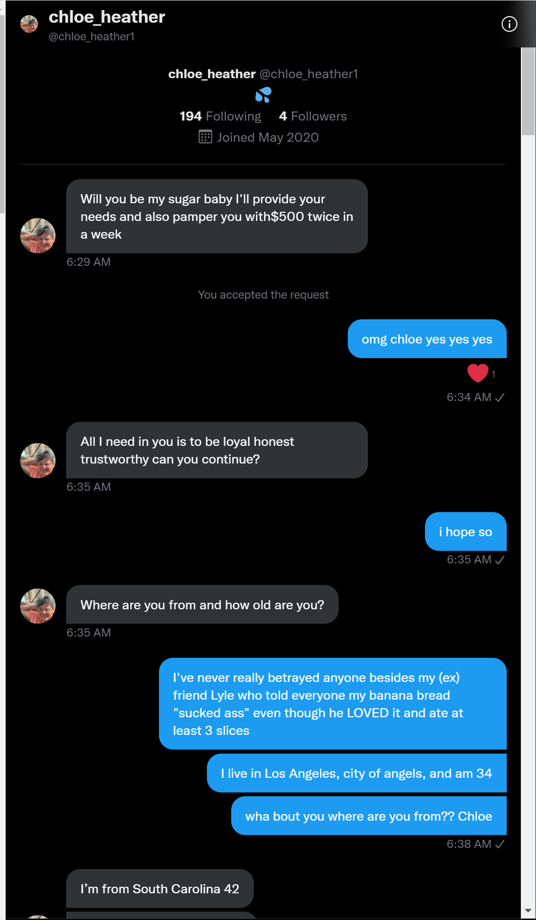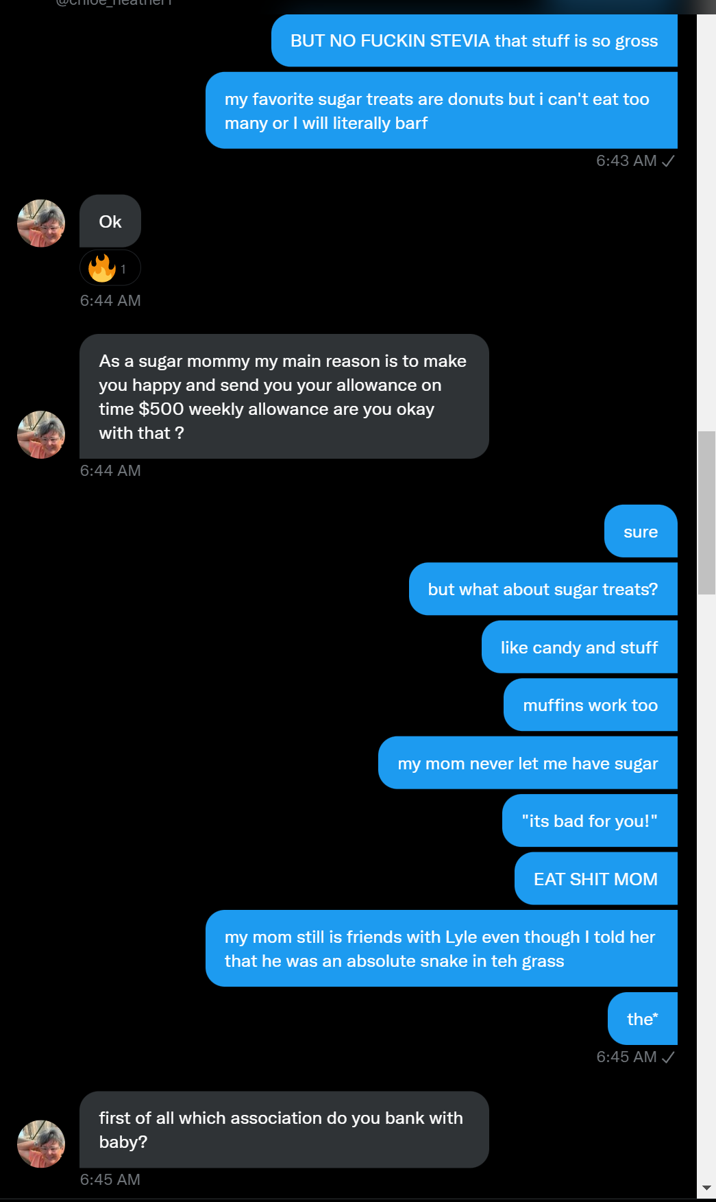 I was SO close to getting a sugar mamaAlex Dobrenko`Apr 23, 2022∙ Paid71ShareWant to be notified when I publish a new piece? Subscribe ya dummy: SubscribeThis morning I met someone. Chloe. She wanted to be my sugar mama and I wanted that too. I had no idea this would end up being the worst day of my life. Lyle if you see this, screw you. This post is for paid subscribersSubscribeAlready a paid subscriber? Sign inPreviousNext